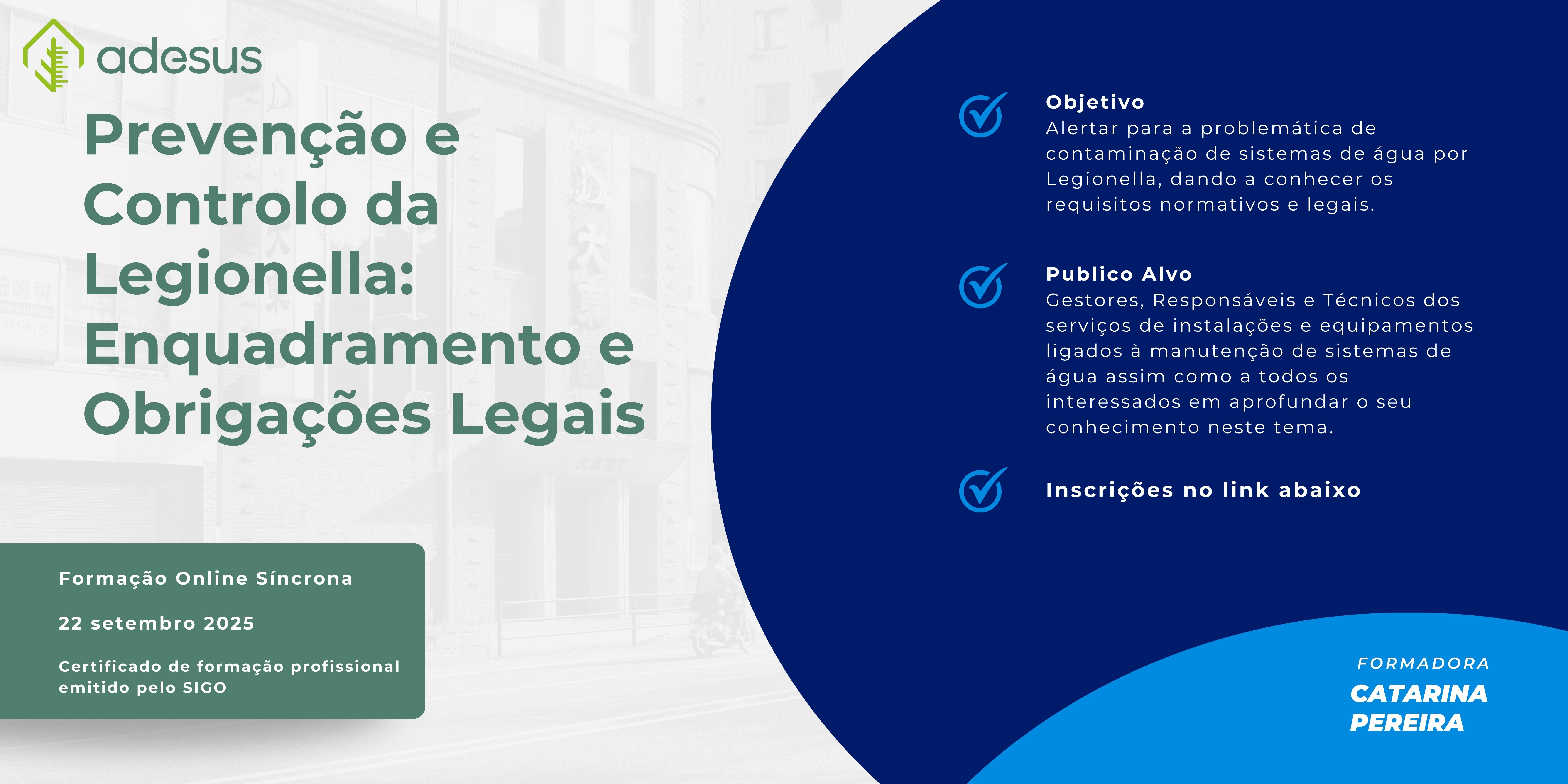 A Legionella é uma bactéria presente em ambientes aquáticos naturais e artificiais que, em determinadas condições, pode proliferar e causar surtos da Doença dos Legionários. Por isso, a legislação portuguesa obriga à implementação de Planos de Prevenção e Controlo da Legionella (PPCL) em diversas tipologias de edifícios e instalações.